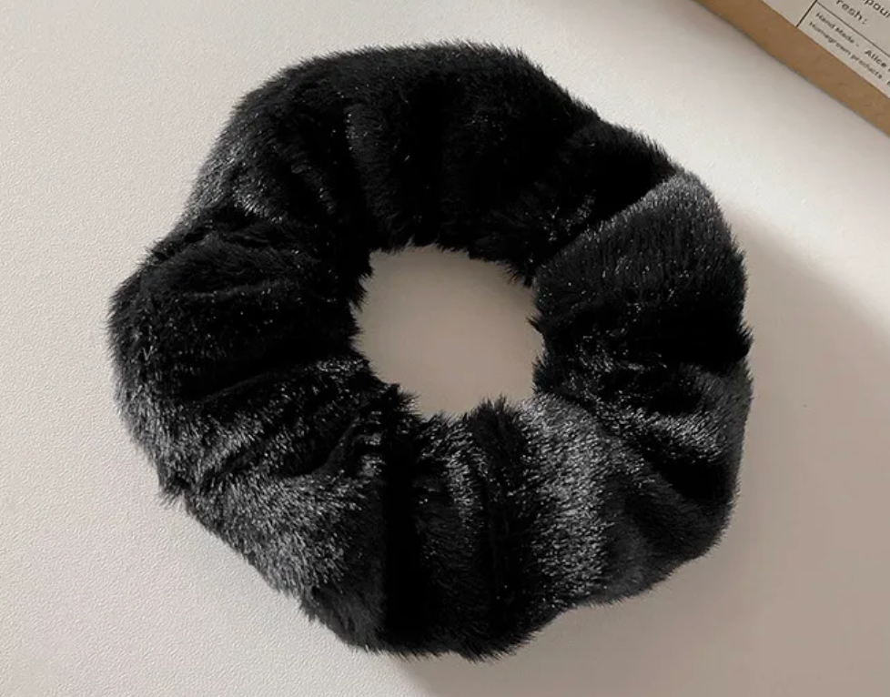 Black Plush Hair Tie 🌸✨