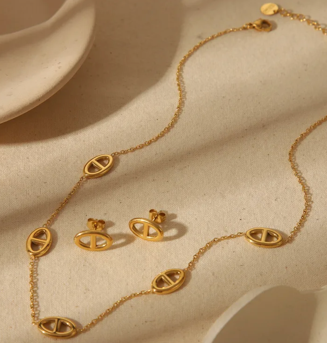 Timeless elegance meets modern luxury with the Chic Luxe 18K Gold Jewelry Set. Inspired by iconic Chanel-style sophistication, this matching bracelet, earrings, and necklace set is crafted from premium 304 stainless steel, plated with 18K gold using advanced Ion Plating (IP) technology for a long-lasting, high-shine finish. Designed for those who love effortless luxury, this set adds a polished and refined touch to any outfitβwhether you’re heading to a business meeting, a special event, or a casual chic outing.
