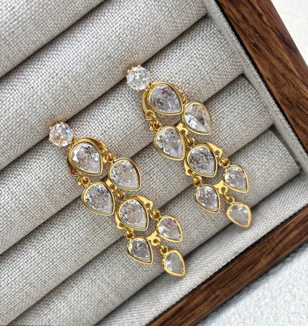 Radiate elegance with the Golden Heart Dewdrop Zircon Earrings, designed to capture the essence of love and serenity. These stunning drop earrings feature a delicate heart shape with water droplet-inspired zircon inlays, symbolizing purity and timeless beauty. Crafted from high-quality copper with a luxurious gold finish, they are the perfect blend of simplicity and sophistication—ideal for vacations, holiday getaways, or effortlessly chic everyday wear.