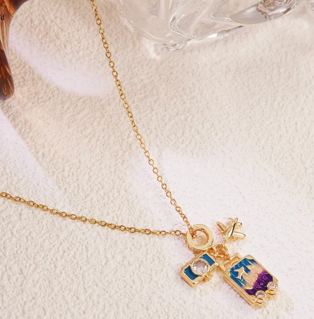 Set your style in motion with the Golden Voyager Airplane & Camera Pendant Necklaceโa symbol of adventure, wanderlust, and timeless elegance. Crafted from 304 stainless steel and copper, this 18K gold-plated pendant features a detailed Earth charm paired with a delicate airplane, capturing the essence of travel and exploration.