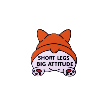 A playful enamel pin featuring the adorable backside of a corgi, emphasizing its tiny legs but bold personality. Perfect for corgi lovers and anyone with a confident, sassy spirit! 🐶✨