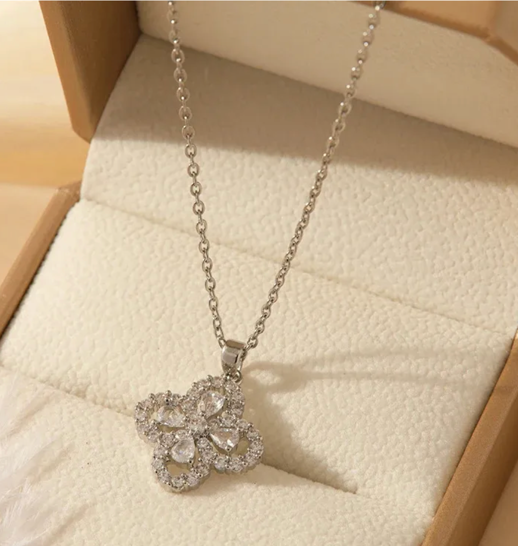 Embrace timeless elegance and good fortune with the White Clover Pendant Necklace! Featuring a delicate white clover pendant, this piece symbolizes luck, beauty, and grace. Crafted from premium titanium steel and copper, itβs adorned with sparkling zircon inlay, adding a touch of luxurious shine. The plated finish ensures durability, while the cable chain design makes it perfect for everyday wear or special occasions.